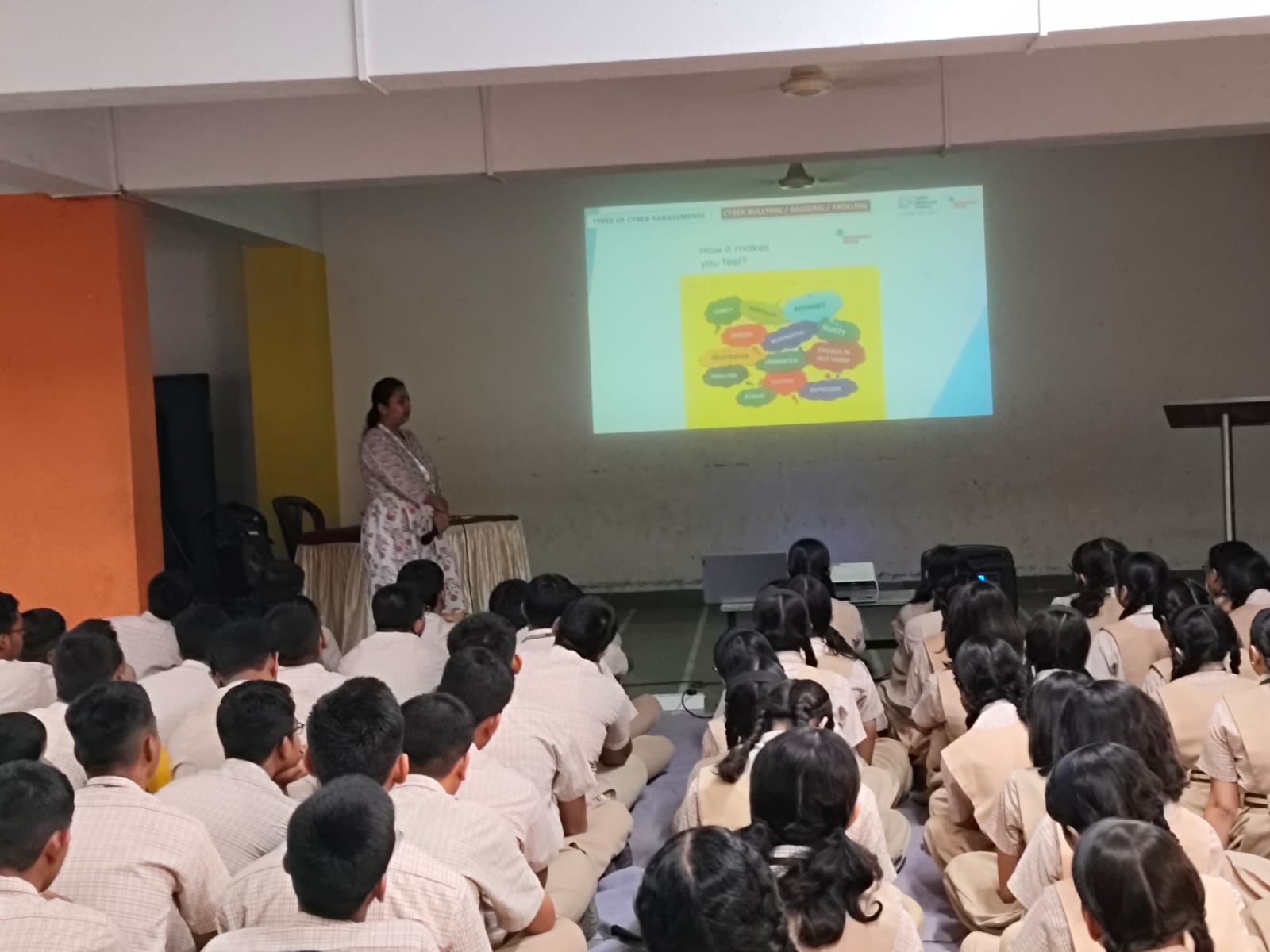 The session covered a variety of important topics related to cyber safety, including the dangers of hacking, photo morphing, online privacy, and the risks associated with cybercrime. The students were highly engaged, demonstrating a keen interest in understanding the consequences of these issues. They actively participated by raising questions on various cyber threats and inquiring about real-world examples of hacking and the impact of online fraud.