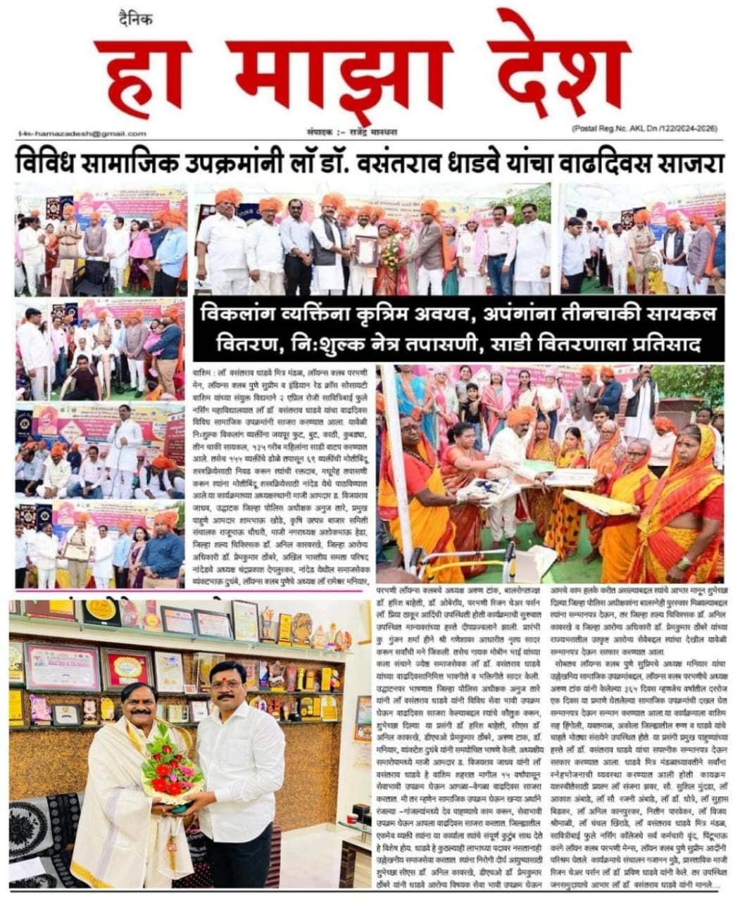The final distribution ceremony took place with IPS Anuj Tare, RC Priya Thakur, Former MLA Adv. Vijay Jadhav, Lion Dr. Vasantrao Dhadve inaugurating the event. This was a key moment for the beneficiaries, who were empowered with mobility and independence.