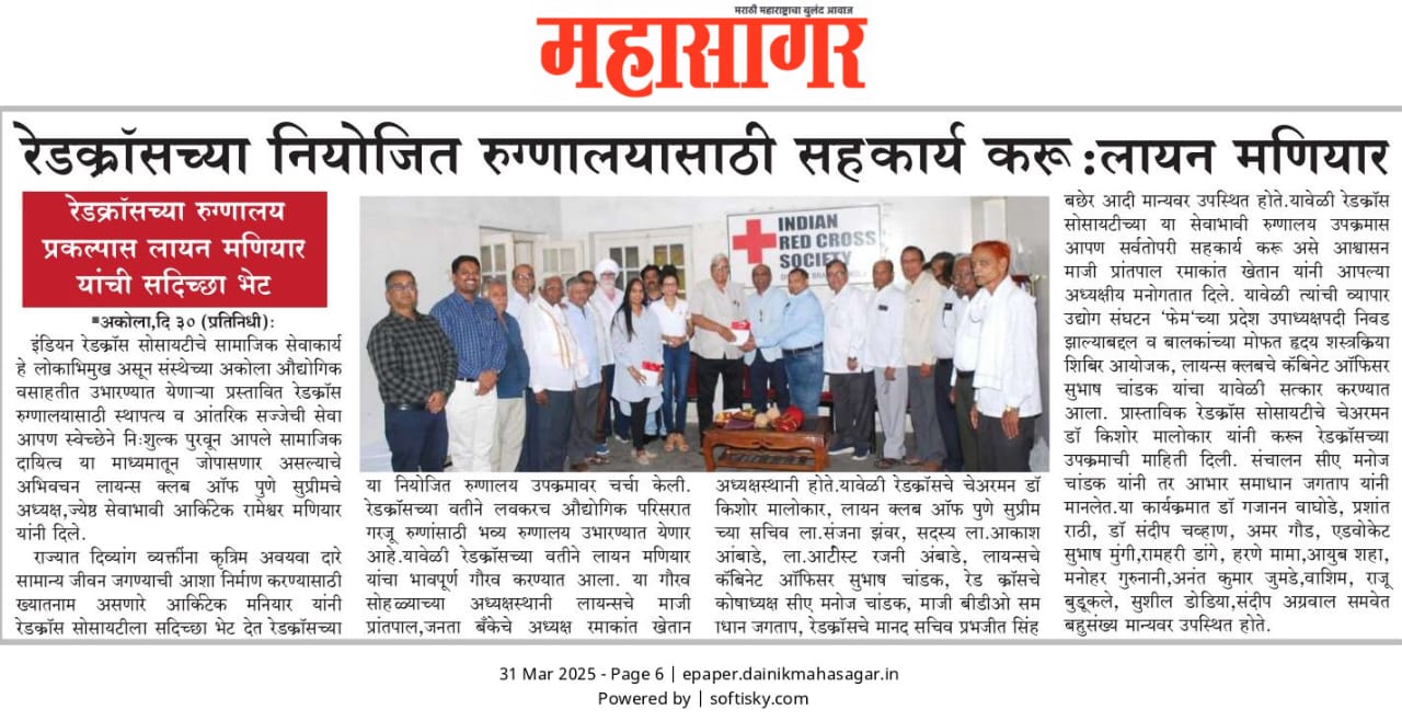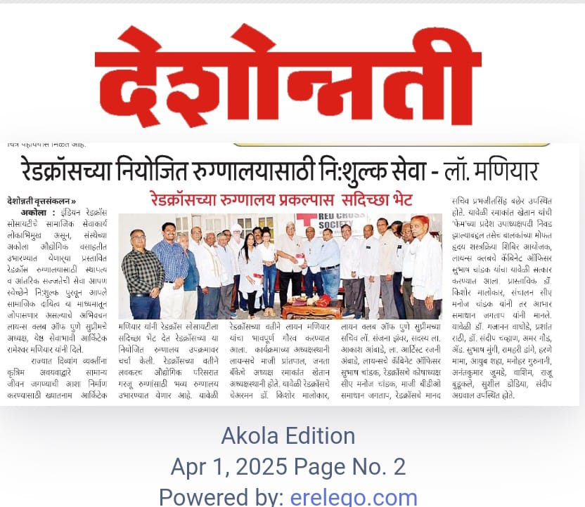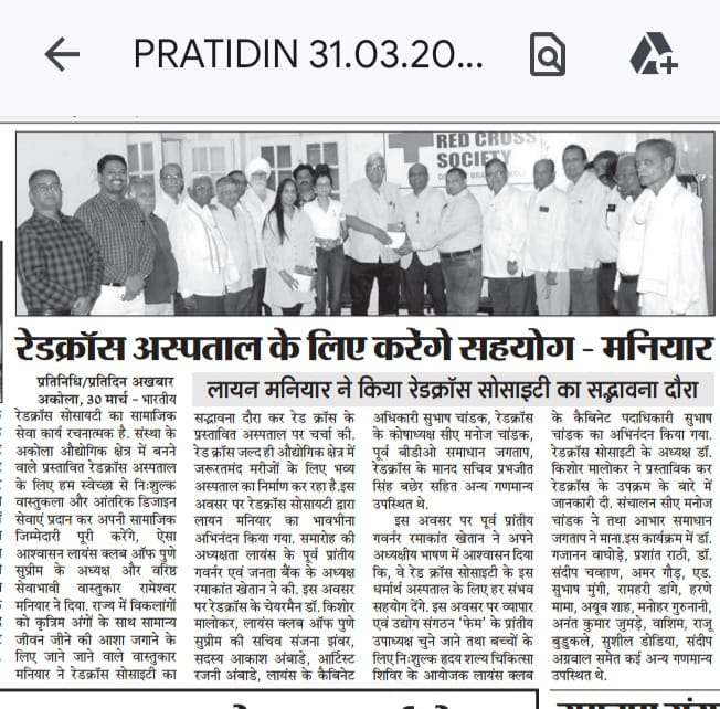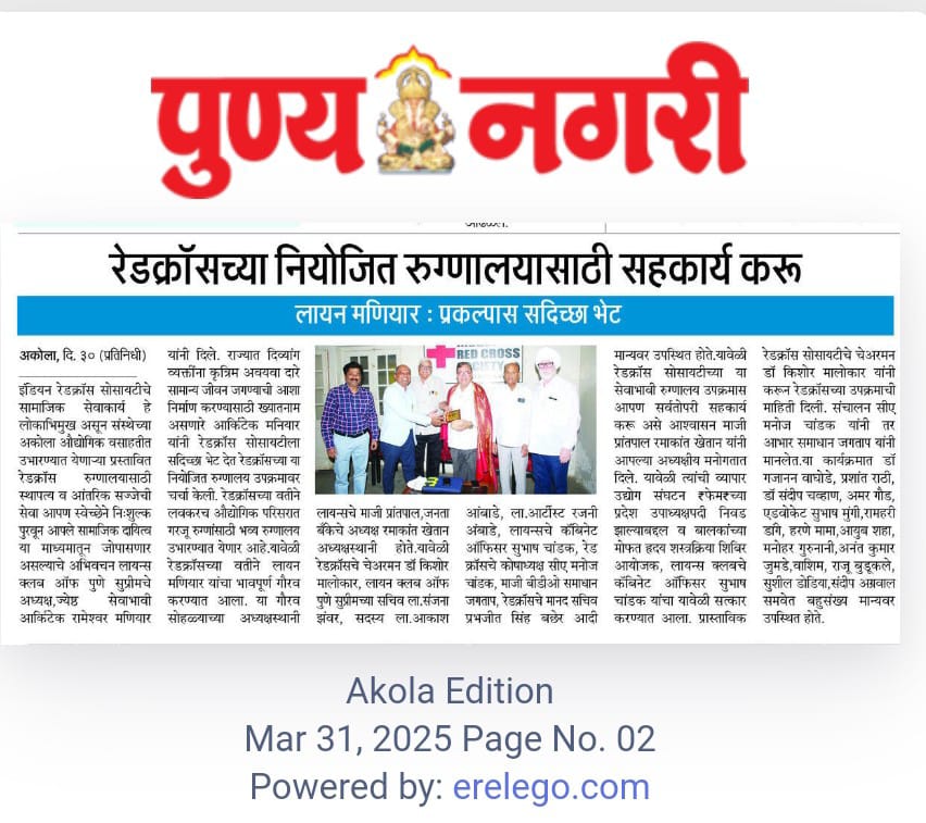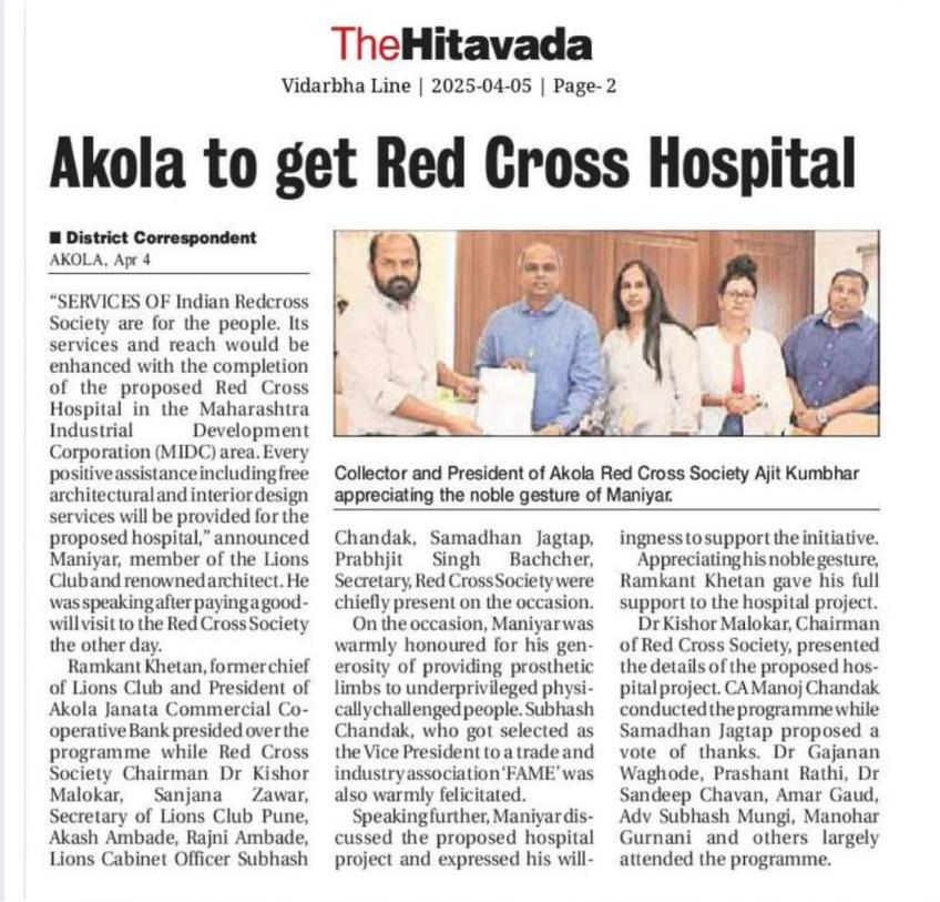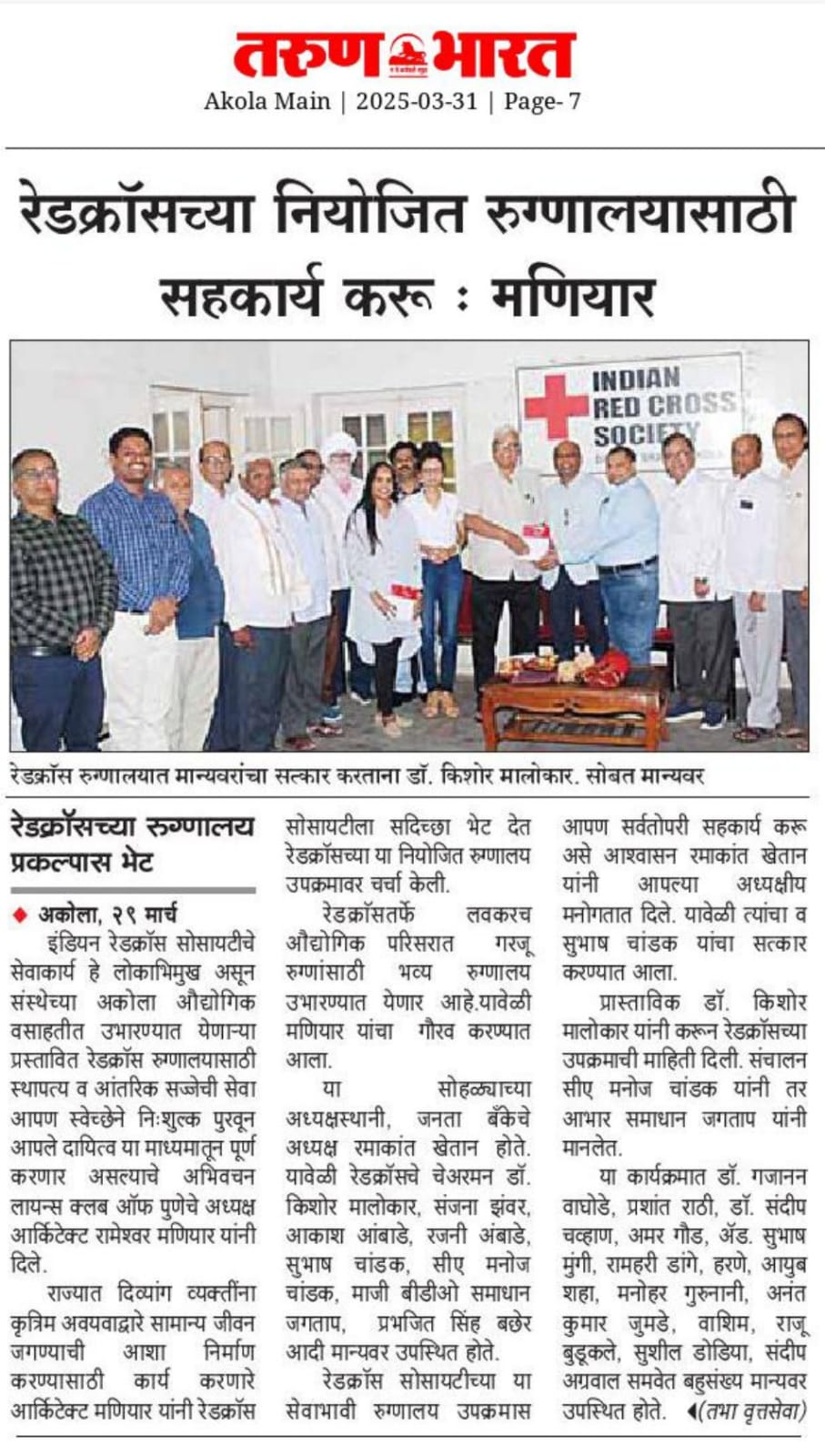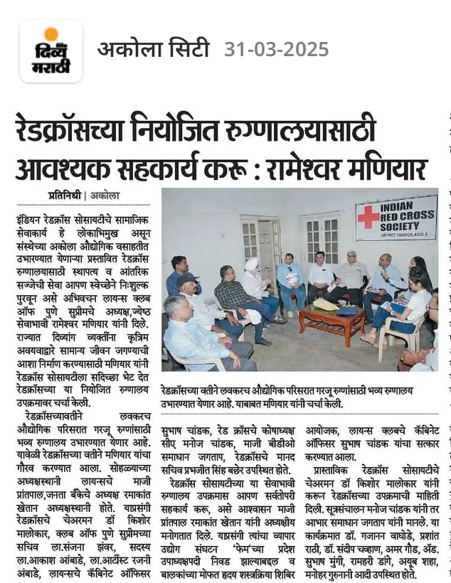 A high-level meeting was held in Akola on March 29th, 2025, focusing on the proposed Red Cross Hospital in the MIDC area of Akola. The initiative is a significant step forward in improving healthcare services for the community, especially the underprivileged and specially-abled.